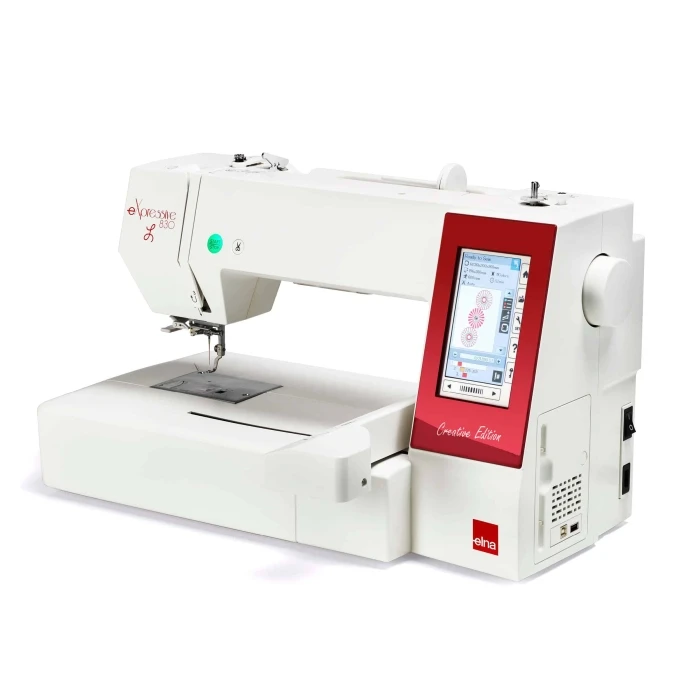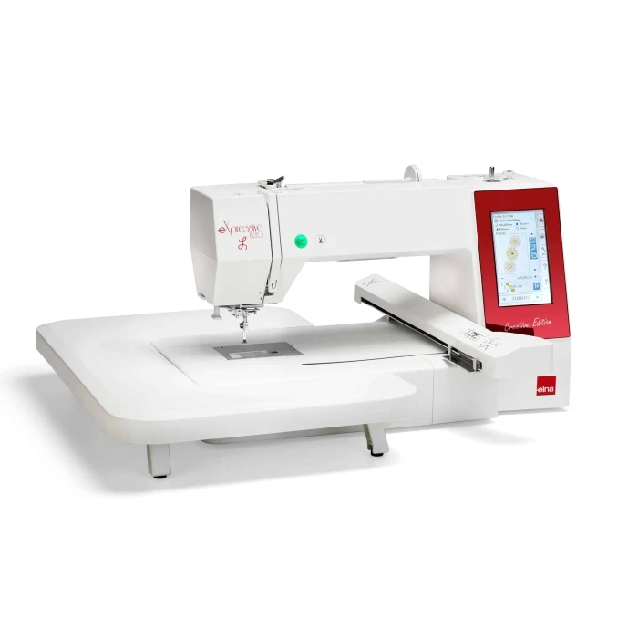 La Máquina de Bordar Elna Expressive 830L cuenta con una pantalla táctil LCD que hace que el trabajo sea muy sencillo. Podemos bordar letras y dibujos, además cuenta con puerto USB, para que seamos nosotros los que añadamos bordados a la máquina. Este modelo de ELNA es muy completa en cuanto accesorios. Área de bordado de 20×36 cm. Incluye 4 Bastidores: Bastidor SQ14b ( 140 mm x 140 mm), Bastidor RE20b (140 mm x 200 mm), Bastidor SQ20b (200 mm x 200 mm) y Bastidor RE236b (200 mm x 360mm). Además incluye una mesa de trabajo más ancha.