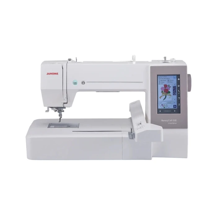 La Máquina de Bordar Janome MC550E LE cuenta con una pantalla táctil LCD que hace que el trabajo sea muy sencillo. Podemos bordar letras y dibujos, además cuenta con puerto USB, para que seamos nosotros los que añadamos bordados a la máquina. Este modelo de JANOME es muy completa en cuanto accesorios. Área de bordado de 20×36 cm. Incluye 4 Bastidores: Bastidor SQ14b ( 140 mm x 140 mm), Bastidor RE20b (140 mm x 200 mm), Bastidor SQ20b (200 mm x 200 mm) y Bastidor RE236b (200 mm x 360mm). Además incluye una mesa de trabajo más ancha.