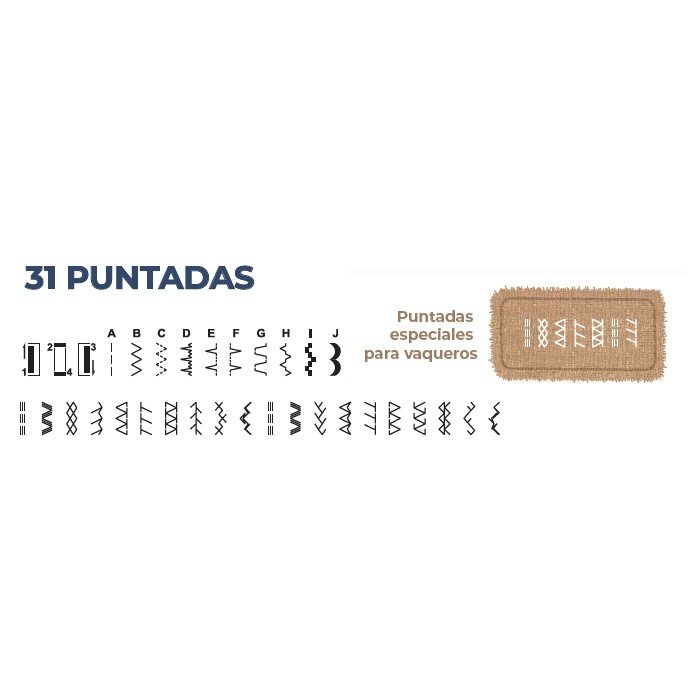 Con 31 puntadas, incluyendo opciones especiales para vaqueros, y 6 filas de diferentes dientes de arrastre, la Denim facilita el manejo uniforme de cualquier material. Su ajuste de largo y ancho de puntada, junto con la doble altura de prénsatelas, proporciona máxima versatilidad y control en todos los proyectos. Además, cuenta con un ojal automático en 4 pasos y luz LED blanca para mayor comodidad y precisión.